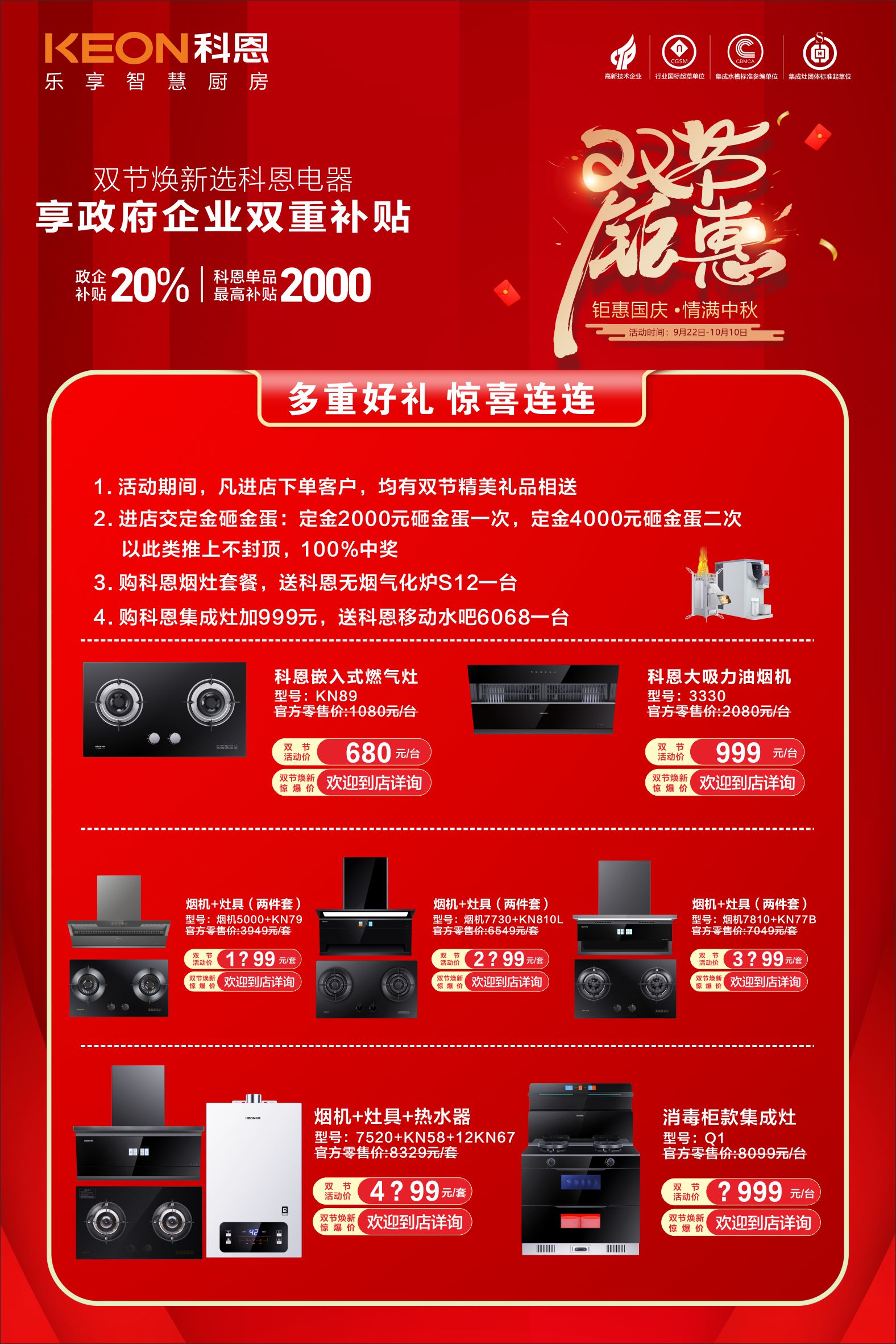 鉅惠國(guó)慶,情滿中秋!科恩雙節(jié)鉅惠活動(dòng)震撼開啟,解鎖廚電專屬禮遇!